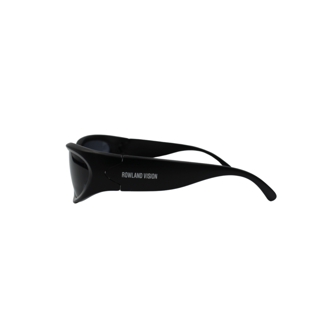 DEFINED BY IT'S THICK MATTE BLACK FRAME, BLACK MIRRORED LENS & MATTE BLACK TEMPLE (ARM).