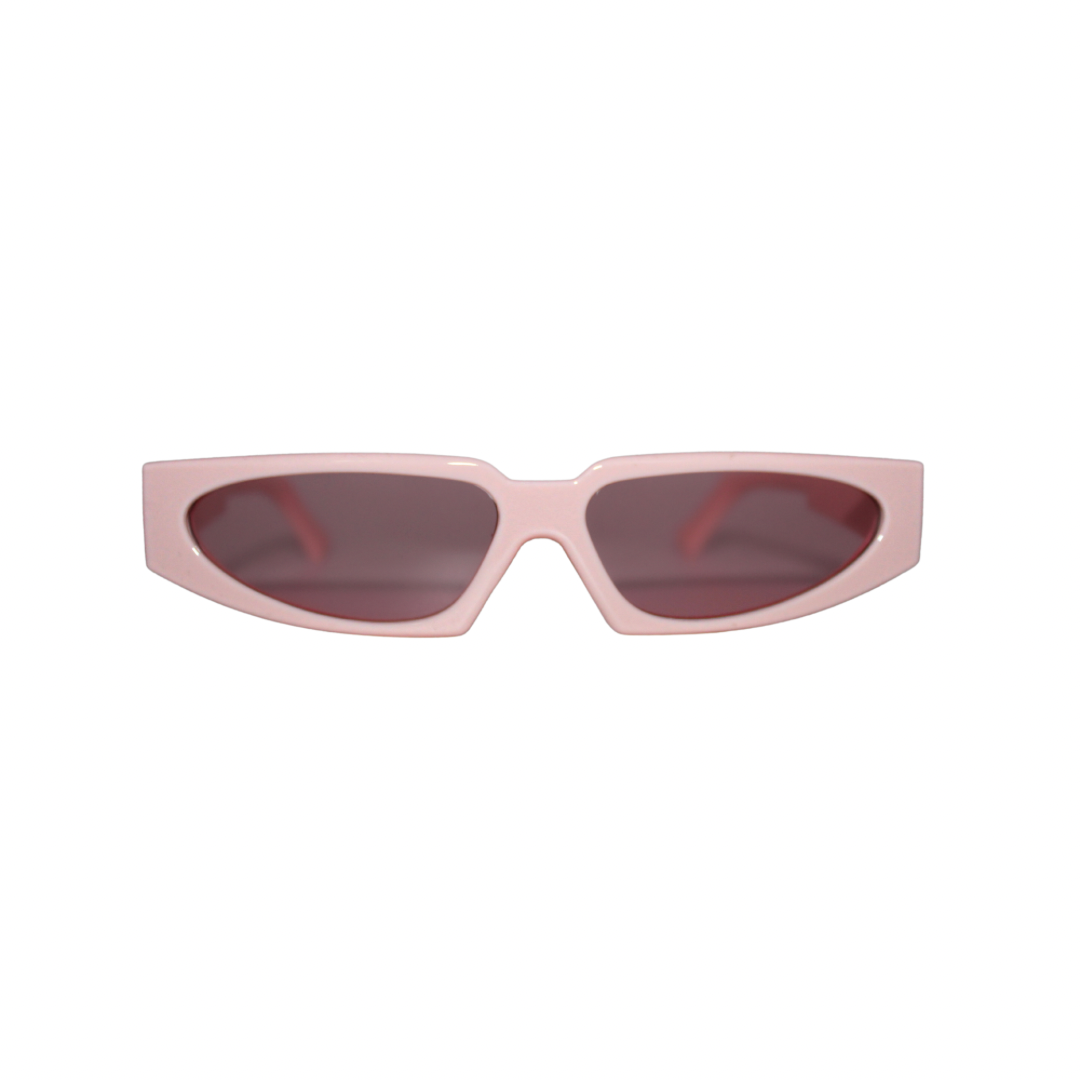 DEFINED BY IT'S THICK BABY PINK FRAME, PINK TINTED LENS & BABY PINK TEMPLE (ARM).