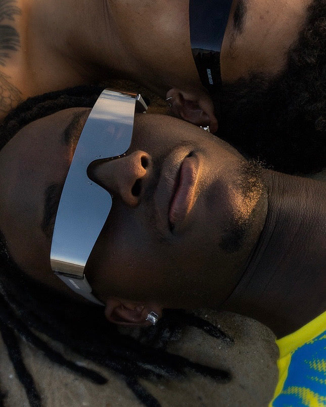 DEFINED BY IT'S LIGHTWEIGHT RIMLESS FRAME, RIMLESS MIRRORED LENS & SILVER TEMPLE (ARM).