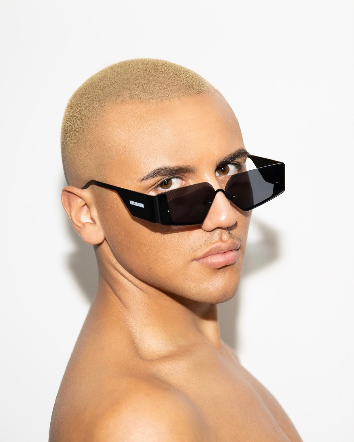 DEFINED BY IT’S BLACK METAL FRAME, BLACK GLASS LENS & BLACK METAL TEMPLE, WITH INTEGRATED NOSE PADS.