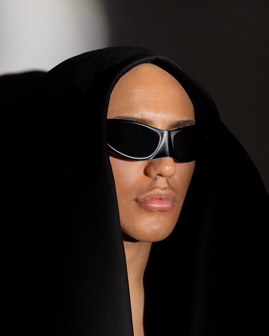 DEFINED BY IT’S THICK BLACK FRAME, BLACK LENS & TEMPLE, WITH AN INTEGRATED MOULDED NOSE PAD.