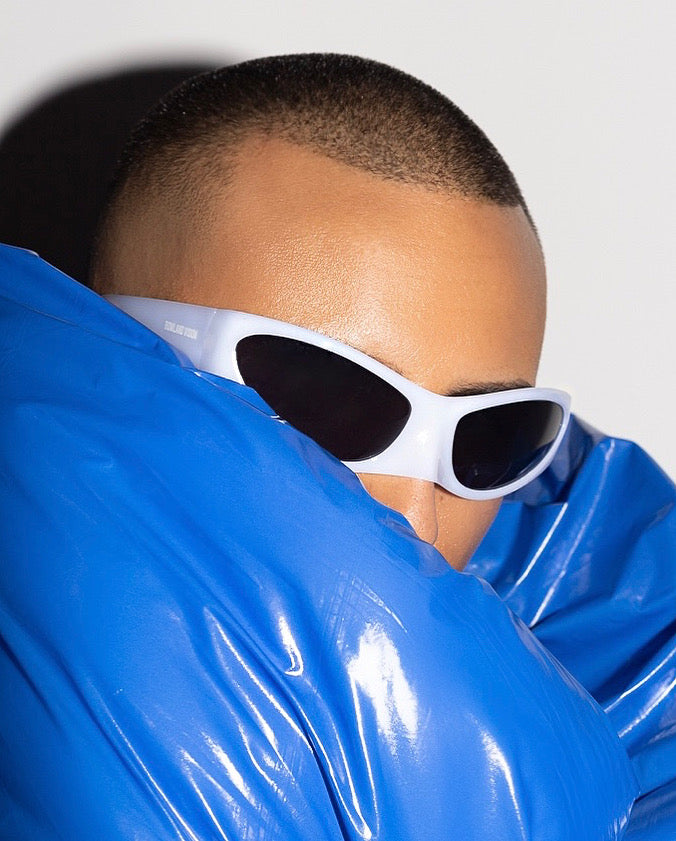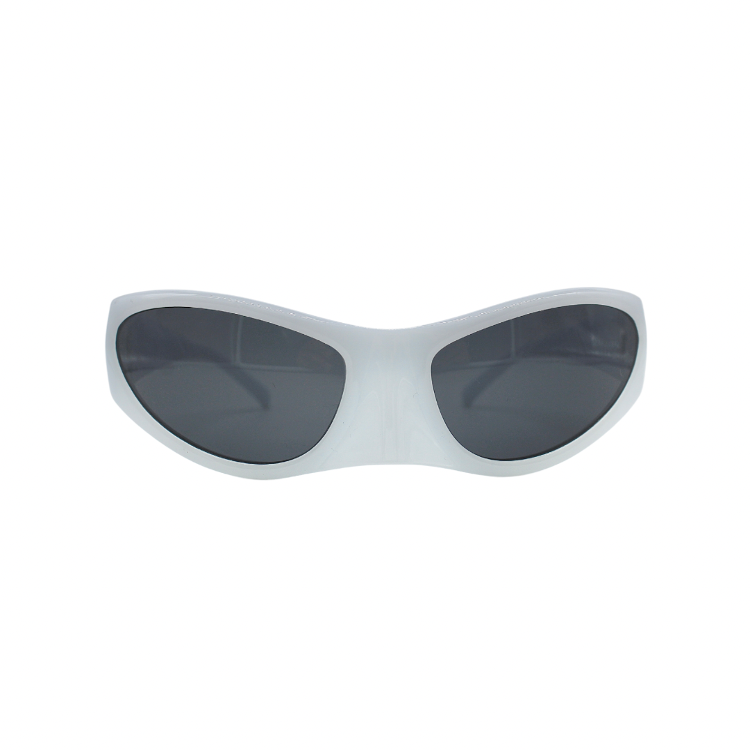 DEFINED BY IT’S THICK MILKY PEARL FRAME, BLACK LENS & PEARL WHITE TEMPLE, WITH AN INTEGRATED MOULDED NOSE PAD.
