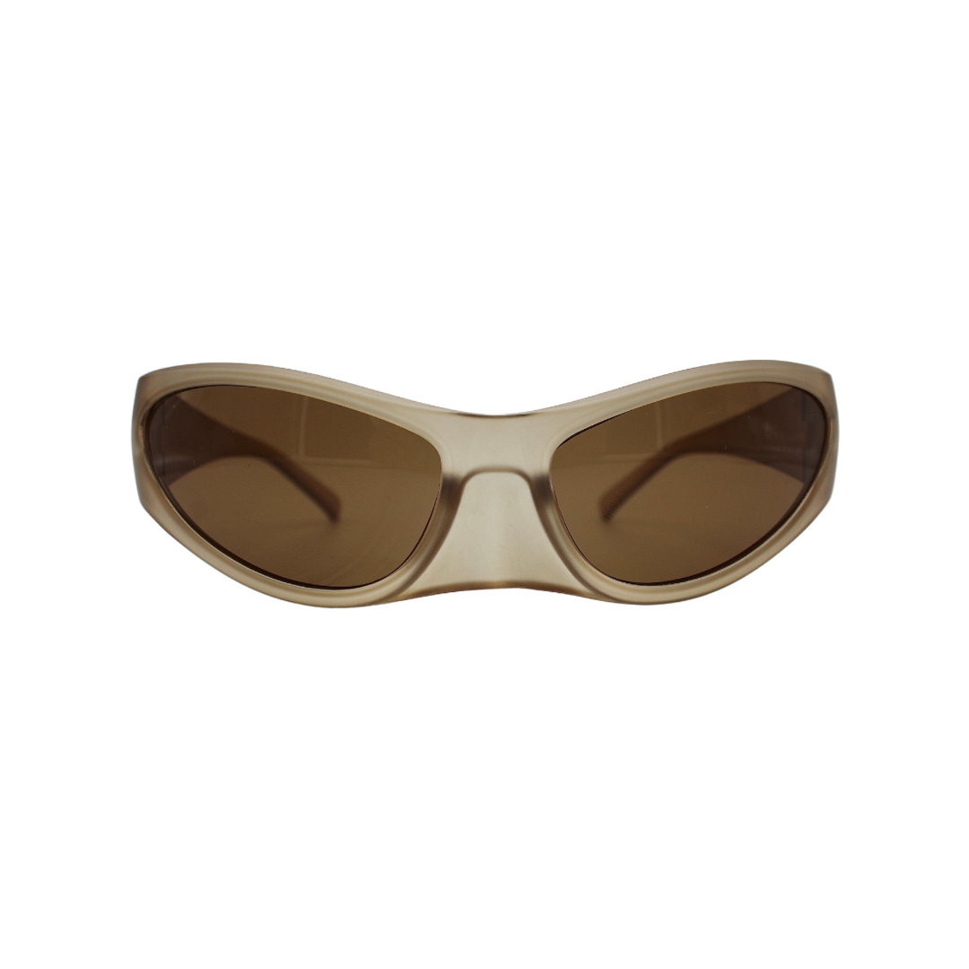 DEFINED BY IT’S THICK TRANSPARENT BROWN FRAME, BLACK LENS & TRANSPARENT BROWN TEMPLE, WITH AN INTEGRATED MOULDED NOSE PAD.
