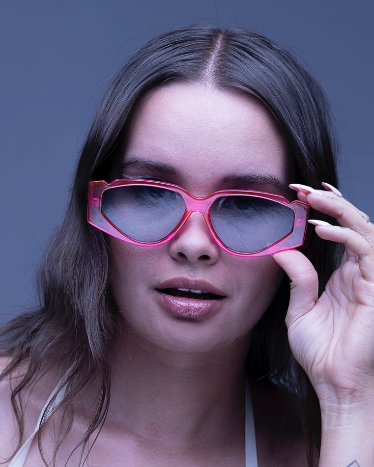 VISION C IS DEFINED BY IT’S TRANSPARENT HOT PINK THICK FRAME, BLACK LENS & IT’S MULTICOLOURED TORTOISE SHELL TEMPLE (ARM) - A LITTLE BIGGER & BRIGHTER THAN VISION ONE & A NEW ERA OF VISION ONE
